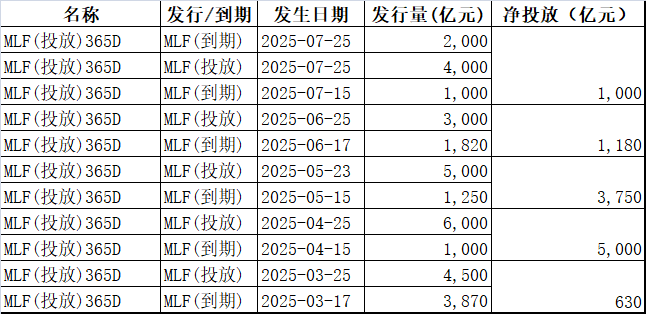 7月25日,央行开展4000亿元1年期MLF操作,实现1000亿元净投放,为连续5个月净投放,旨在释放中长期流动性,稳定市场预期、确保资金面总体平稳。